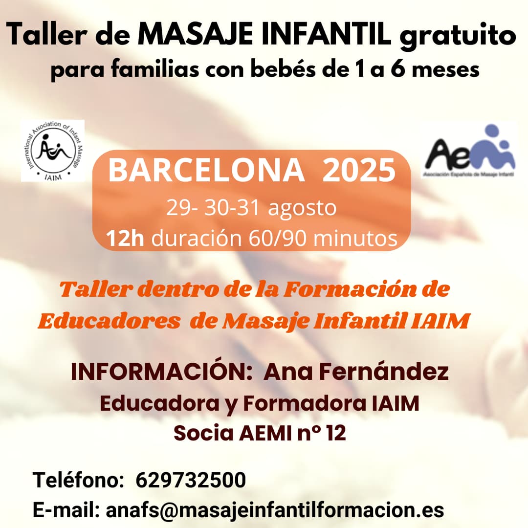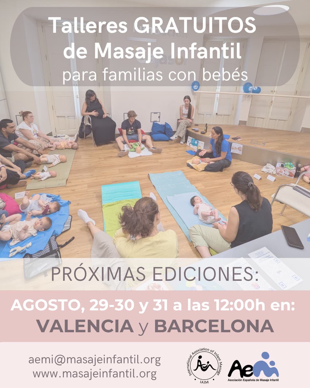 Se trata de talleres que se engloban dentro de la Formación de Educadores/as de Masaje Infantil de IAIM-AEMI. Son GRATUITOS y van destinados a familias