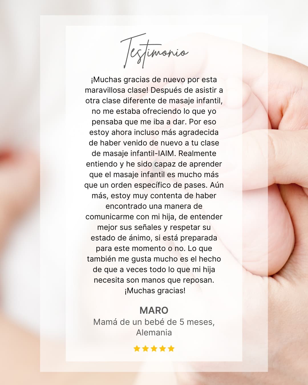 Hoy compartimos este testimonio de una madre que asistió a un curso de Masaje Infantil de la mano de una compañera alemana de IAIM. Porque